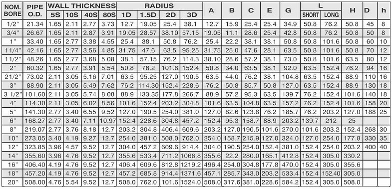 Radius of Short Radius Elbow is 1 times nominal pipe diameter, Radius of Long Radius Elbows is 11/2 time nominal pipe diameter